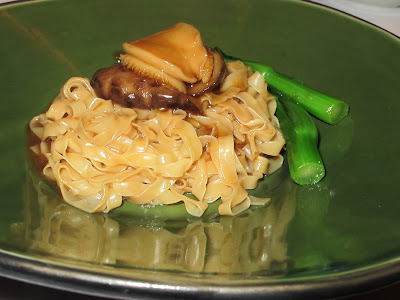 Stewed whole abalone with noodles came next. I've had very thin sliced abalone barbecued for seconds, which was tender, but anytime we have been served abalone in larger or thicker pieces it has always been very rubbery. Not tonight. The taste of the abalone had seeped into the noodles giving the whole dish a great flavour.