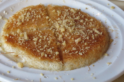 This fish is a Nth African river fish of the Tilapia family. It was brought to Australia as a tropical aquarium fish but , by accident or intention, got into the waterways of Queensland and NSW. It is regarded as one of the most noxious species in Australia and in NSW possession of this fish can be penalised with a fine of up to $11,000. On the positive side it is a fine white fleshed fish which has soft bones, and a lot of them. It has to be eaten with care but I think it worth the effort. We enjoyed two great desserts. The best one was Lebanon Nights, also known as Nights of Beirut. Basically made from milk, sugar, either rice or cornflower with rose water and pistachio nuts, with or without almonds, and set like a pannacotta it was silky smooth, gently flavoured and very moorish (and Moorish I guess). This was a variation using sago and sat on a thick sweet mouth watering cream