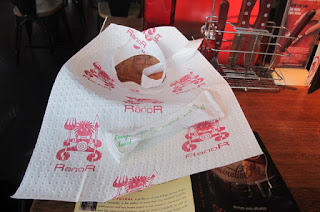 Many dishes were served on black plates/platters and were hard to photograph at the table.