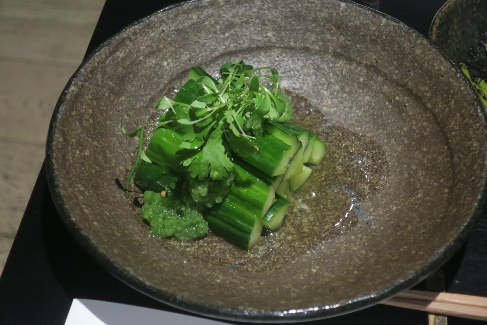 The meal began with a plate of edamame which was char griled with sea salt, shizo flower and garlic oil